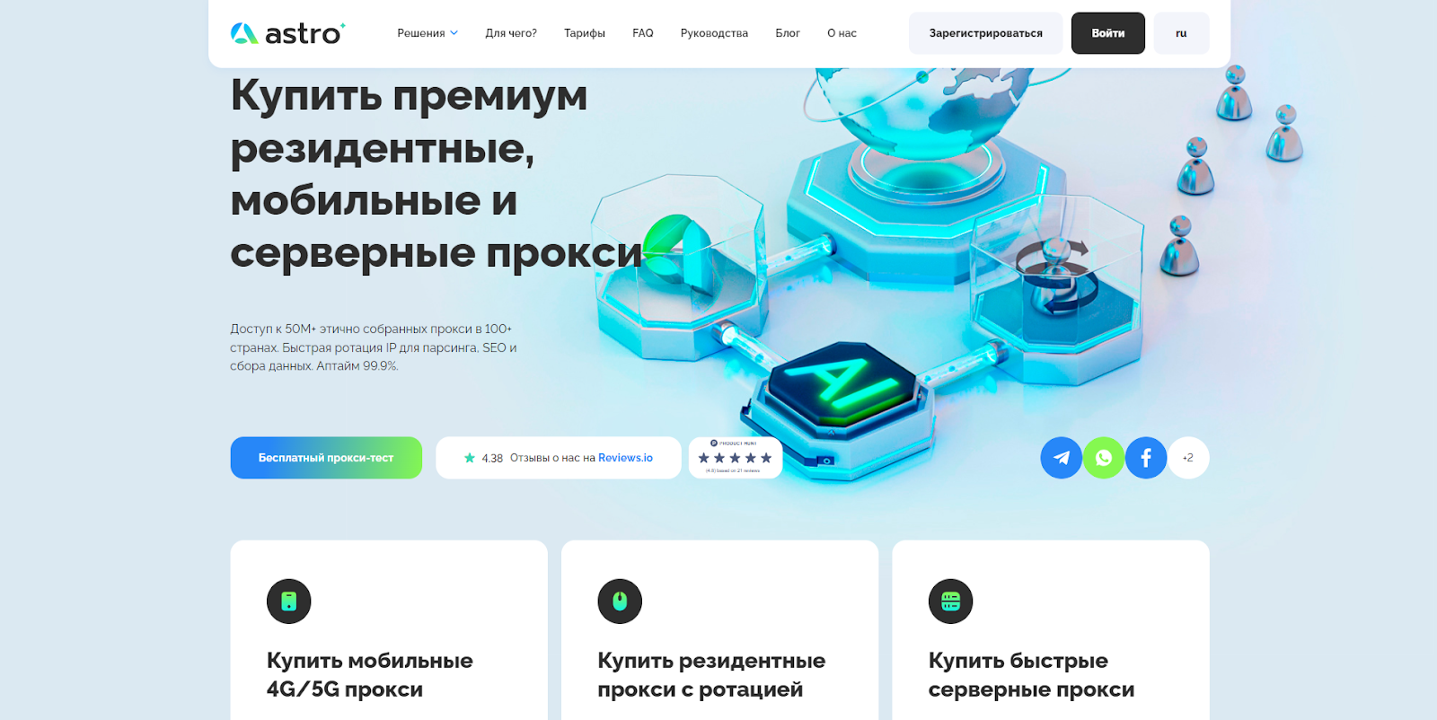 Вывод простой: качество сетевых узлов подтверждается только тестом в конкретном сценарии Telegram/Telegram Expert. Именно здесь Astro закрывает сетевой слой работы Telegram Expert как управляемая инфраструктура IP-адресов: IP-адреса реальных пользователей предоставляются в рамках KYC и AML политики, а резидентские, мобильные и дата-центровые сетевые узлы позволяют подобрать тип подключения под задачу и сохранить предсказуемую сетевую логику для регистрации, прогрева, рассылок и парсинга.