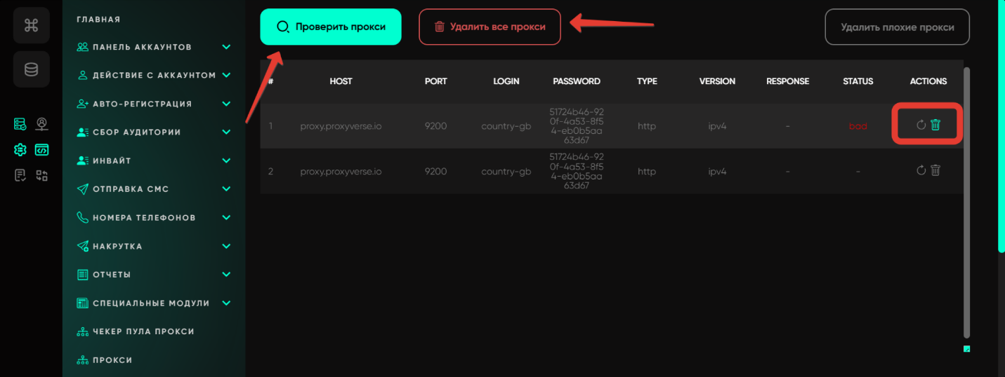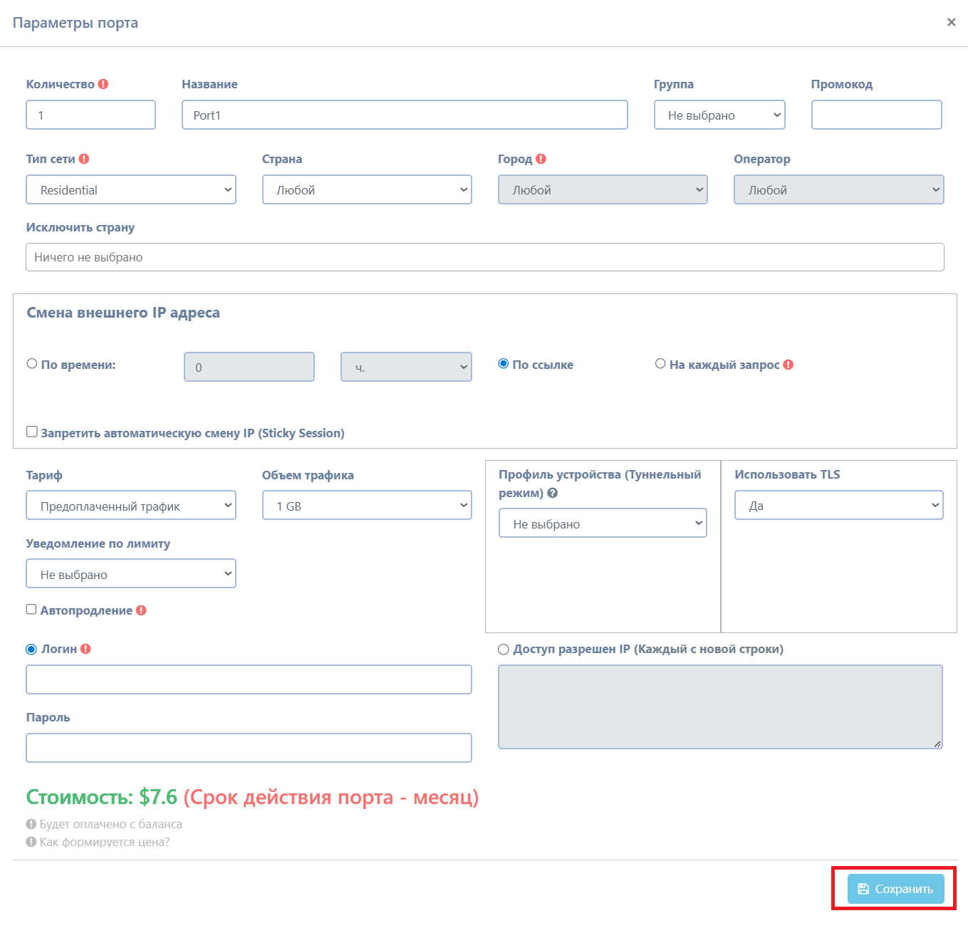 [!!] Важно: после сохранения порта Astro выдаст данные для подключения – именно их нужно внести в Telegram Expert: host (IP), port (номер порта), login, password, type (HTTP или SOCKS5).