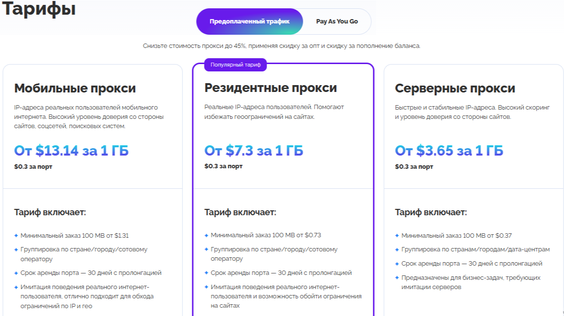 Скидочная программа Astro снижает стоимость резидентских, мобильных и дата-центровых сетевых узлов. Скидка рассчитывается автоматически и формируется из двух компонентов: скидки за объём заказа (трафик и количество портов) и накопительной скидки за пополнения баланса за последние 30 дней; обе скидки суммируются.