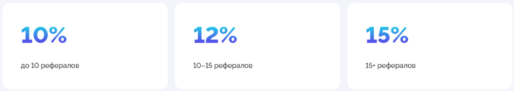Чем больше активных рефералов, тем выше процент и итоговый доход.