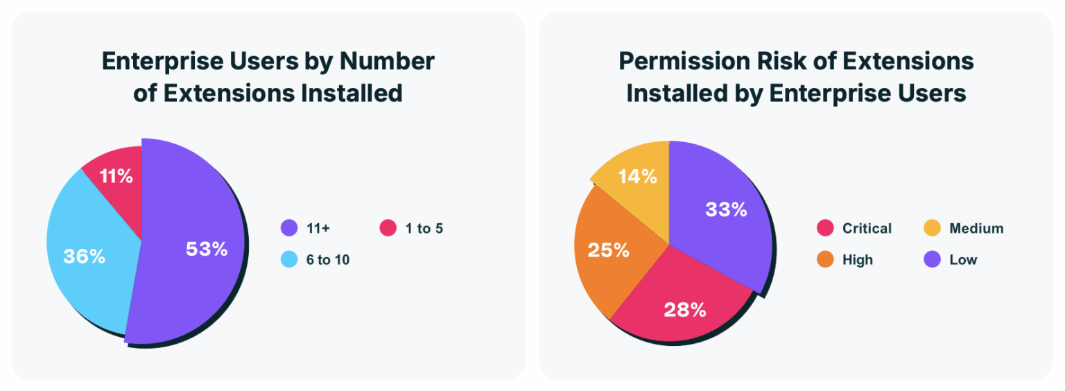 99% сотрудников хотя бы один раз ставили расширение. И половина — те, что обладают критическими разрешениями: доступ к вкладкам, cookie, буферу обмена, запросам.
