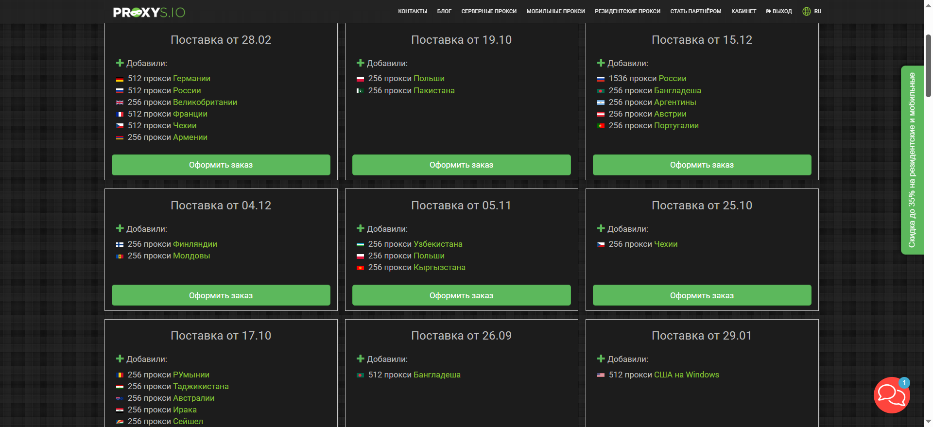Если вы планируете масштабную кампанию и вам нужны выделенные серверные мощности под определенную страну, действует специальное предложение с 40% скидкой на серверные адреса для популярных гео.