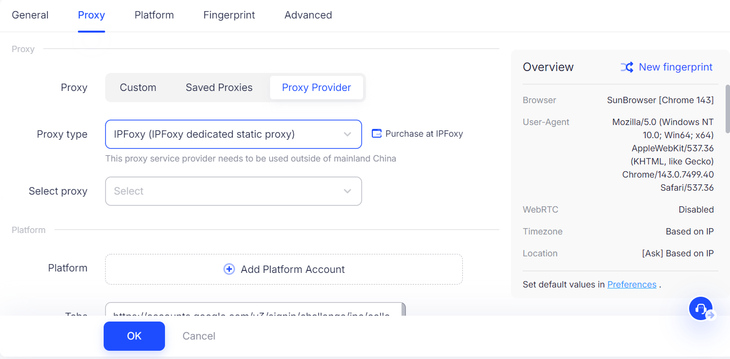 Покупка «прогретых» аккаунтов: большинство таких аккаунтов было зарегистрировано через низкокачественные скрипты. Когда вы входите с нового IP, резкая смена «отпечаток устройства + IP» провоцирует бан. Всегда лучше регистрировать свои аккаунты самостоятельно через IPFoxy.