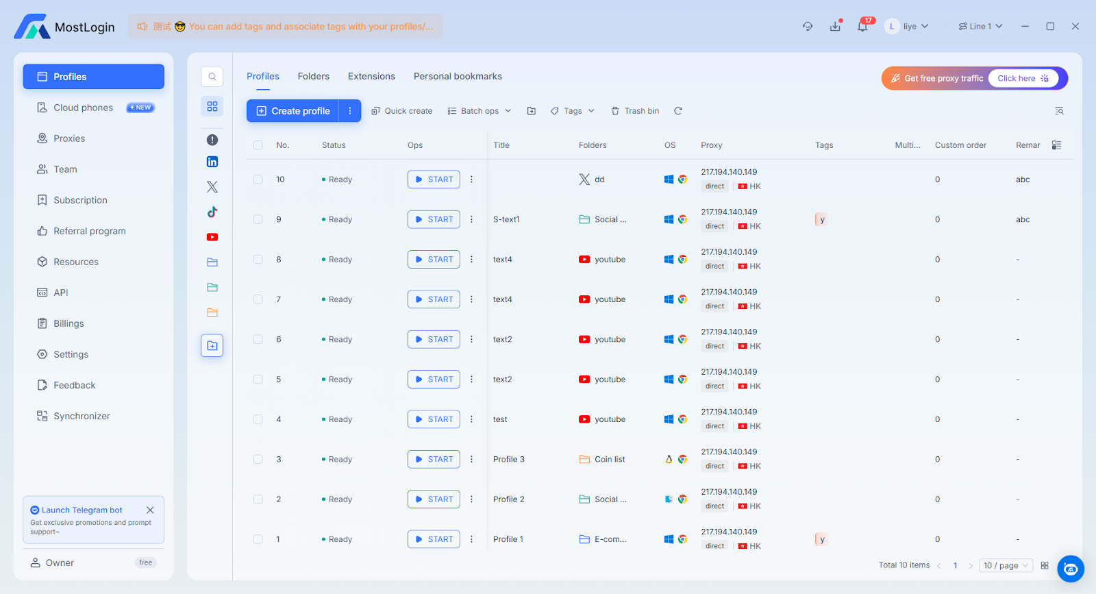 С MostLogin можно одновременно работать с десятками Telegram-аккаунтов в веб-версии, заходить в рекламные кабинеты Facebook и Google, управлять соцсетями — и при этом каждый профиль будет выглядеть как отдельный реальный пользователь.