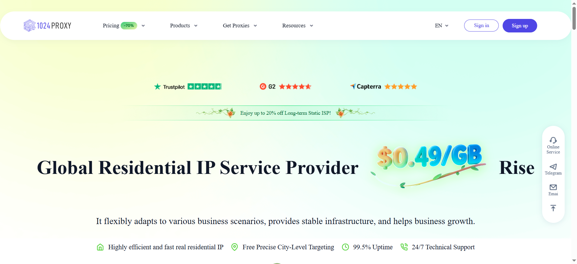 1024proxy позиционирует себя как универсального поставщика сетевой IP-инфраструктуры для международного рынка. Сервис предлагает резидентские, дата-центровые и мобильные распределённые сетевые узлы с поддержкой нескольких географий. Платформа ориентирована на типовые сценарии использования, такие как веб-скрейпинг и автоматизация.Уникальное торговое преимущество: сервис предлагает простой интерфейс без лишней сложности, который скрывает трудоёмкие этапы настройки и рассчитан на пользователей, которым нужны рабочие IP-шлюзы без глубоких сетевых знаний.