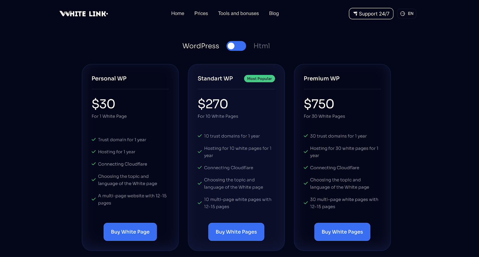 В свою очередь в тарифы White Link WP входит домен с отлежкой + хостинг. К каждому домену присвоен SSL сертификат.